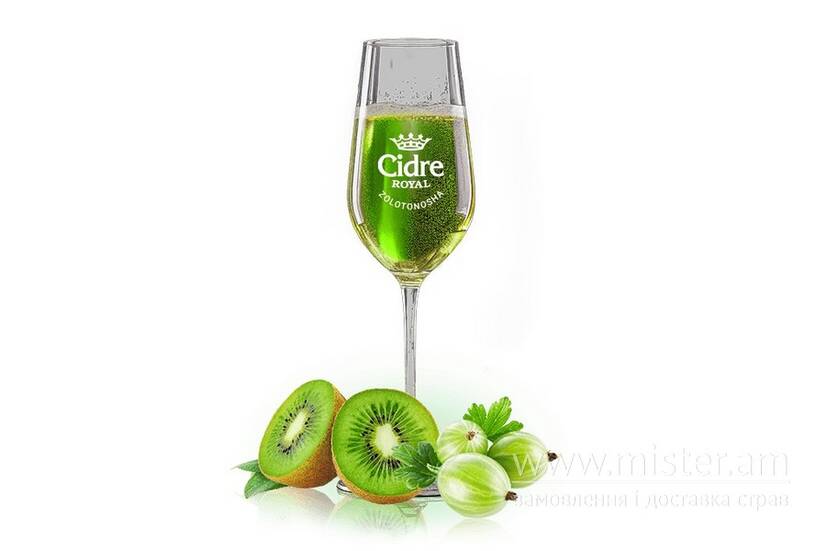 Сидр поєднує в собі солодку та кислі нотки ківі, агрусу створюючи бадьорий та енергійний смак. Вміст алкоголю: 5%.