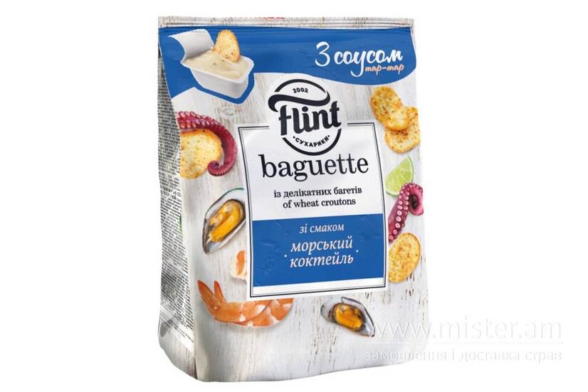 Багети пшеничні "Морський коктейль" з соусом "Тартар" - пшеничний багет з ароматом морепродуктів та з пікантним соусом тар-тар у пачці.