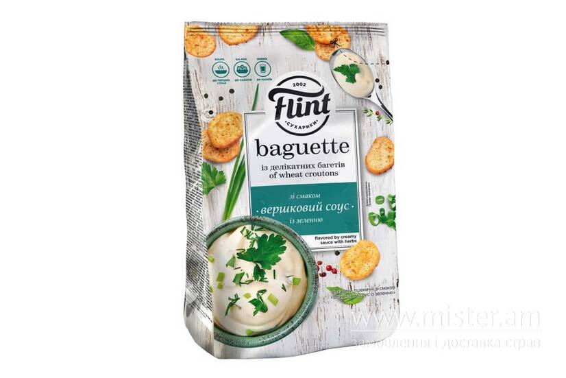 Багети пшеничні "Вершковий соус із зеленню" - хрусткий пшеничний багет з ніжним вершковим соусом і запашною зеленню.
