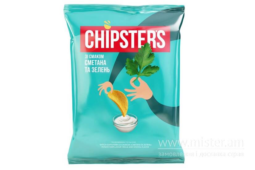 Чипси Chipsters Сметана та зелень — чипси з ніжним вершковим смаком і ароматом зелені.