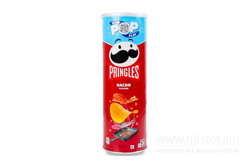 Чипси Pringles Бекон - ідеальний вибір для любителів насиченого, солонуватого смаку бекону з легкими копченими нотками.