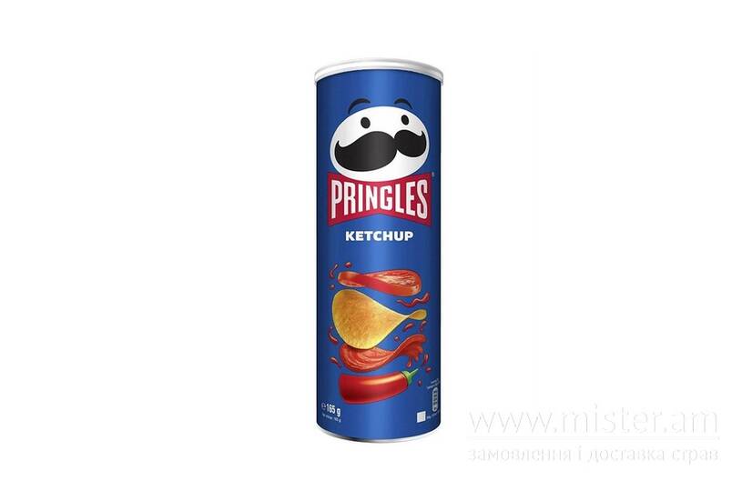 Чипси Pringles Кетчуп - солодкий і водночас пікантний томатний смак, що ідеально поєднується з фірмовою хрусткою текстурою чипсів.
