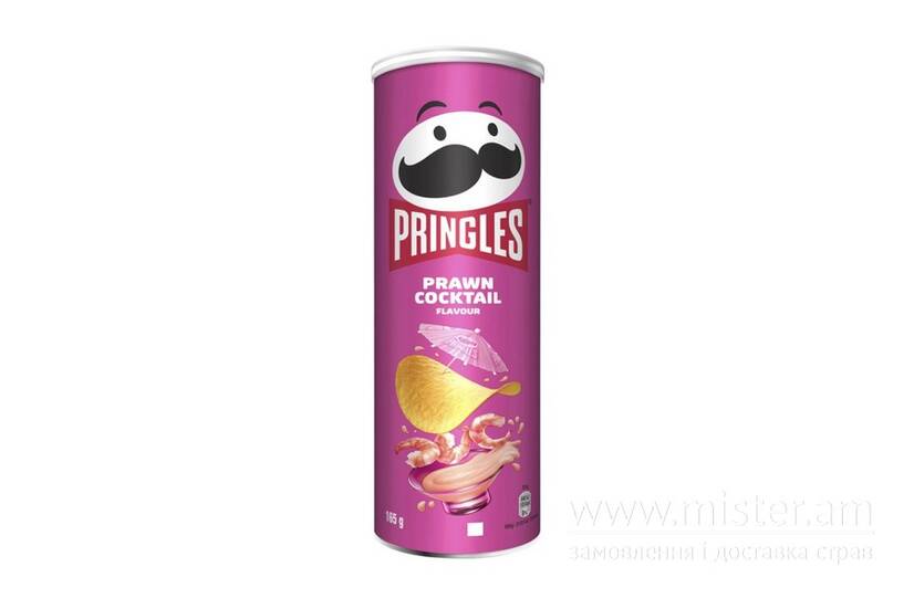 Чипси Pringles Коктейль з креветок - це хрусткі, унікальної форми картопляні чипси з пікантним смаком класичного коктейлю, що поєднує ніжні нотки морепродуктів.