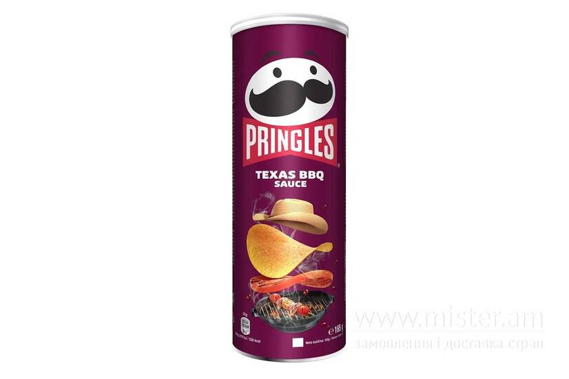 Чипси Pringles Texaський BBQ - хрусткі чипси Pringles зі смаком смаженого м`яса на відкритому вогні та класичного барбекю соусу.