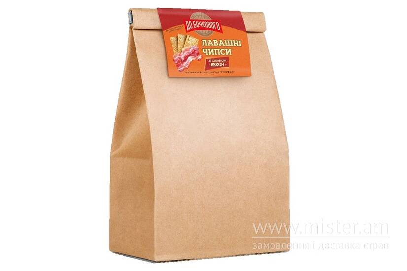 Чипси пшеничні печені з лаваша "Бекон" - хрусткі печені пластинки пшеничного лаваша зі смаком бекону.