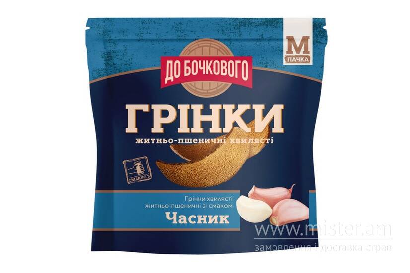 Грінки житньо-пшеничні хвилясті "Часник" - хрусткі хвилясті грінки з насиченим смаком часнику.