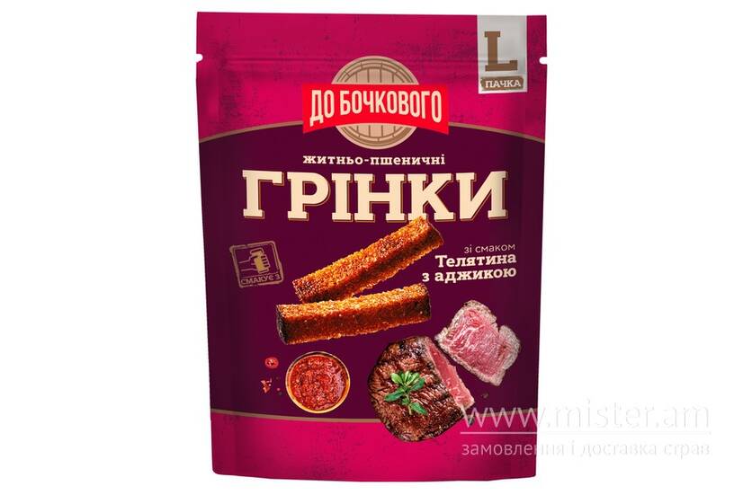 Грінки житньо-пшеничні "Телятина з аджикою" - ароматні грінки з пряно-гострим м`ясним смаком.