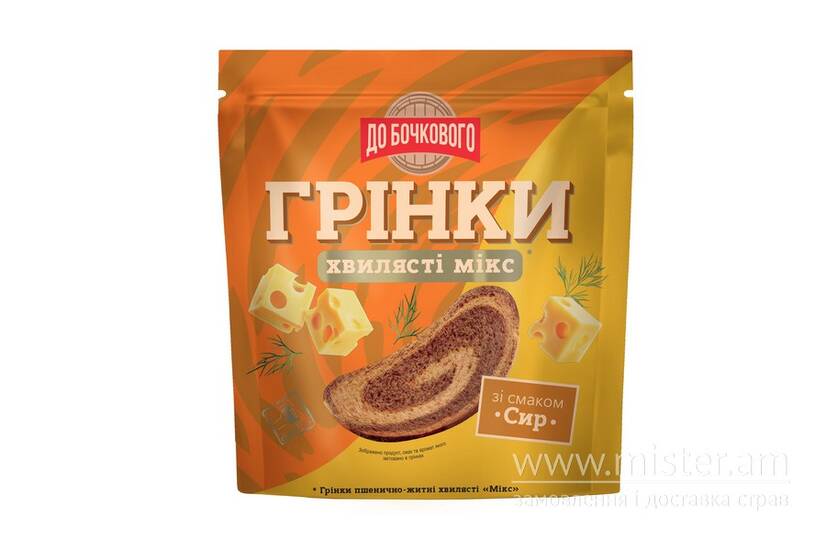 Грінки пшенично-житні хвилясті "Мікс" зі смаком "Сир" - хрусткі хвилясті грінки, що мають насичений аромат і ніжний смак сиру.