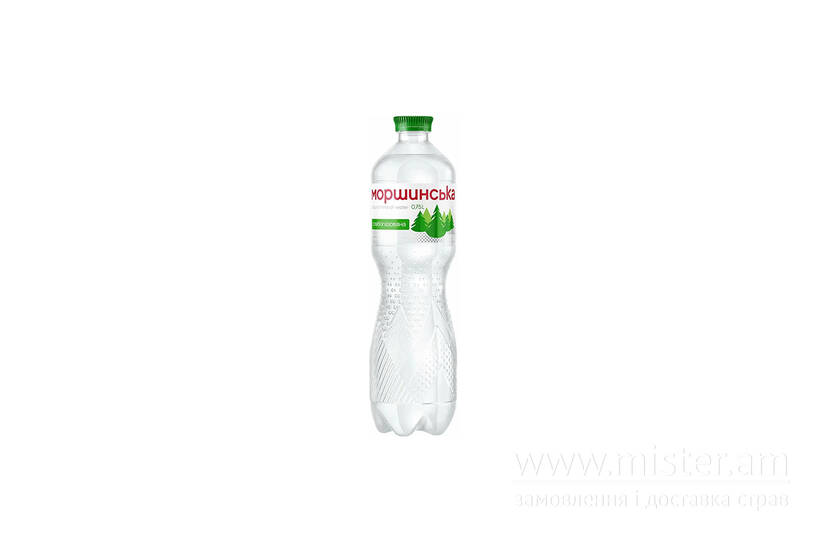 Безалкогольний напій вода "Моршинська" слабогазована в пляшці об`ємом 0,75 л є природною мінеральною столовою водою.