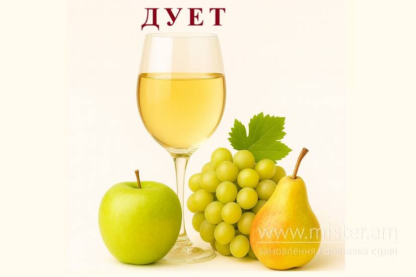 Біле напівсолодке виноградне вино з нотами яблука та груші. Виготовлене з відбірних європейських сортів винограду. Вміст алкоголю: 11%.