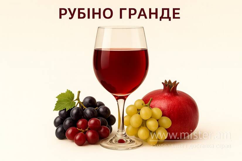 Червоне напівсолодке виноградне вино з нотою гранату. Виготовлене з відбірних європейських сортів винограду. Вміст алкоголю: 11%.