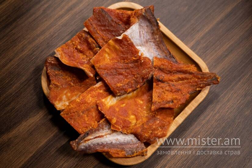 Рибна закуска з путасу з гострим перцем; солоно-солодкий смак, пікантний післясмак.