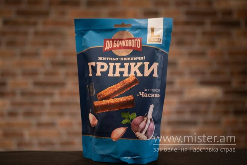 Інтенсивний запах і смак часнику, класика серед грінок, відмінний хрускіт.