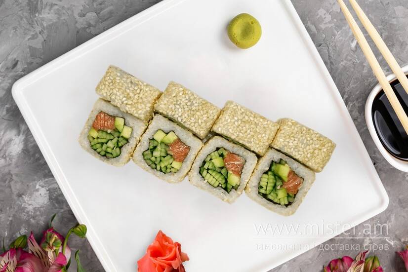 Рол "Каліфорнія" з лососем в кунжуті
