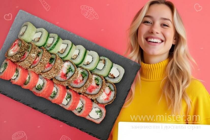 Філадельфія з лососем, Фрі рол з креветкою, Філадельфія грін з вугрем. 24 шм.
