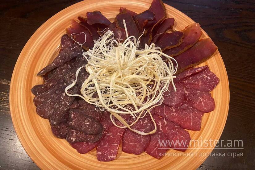 Суджук, бастурма, сиров`ялена яловичина, сир косичка.