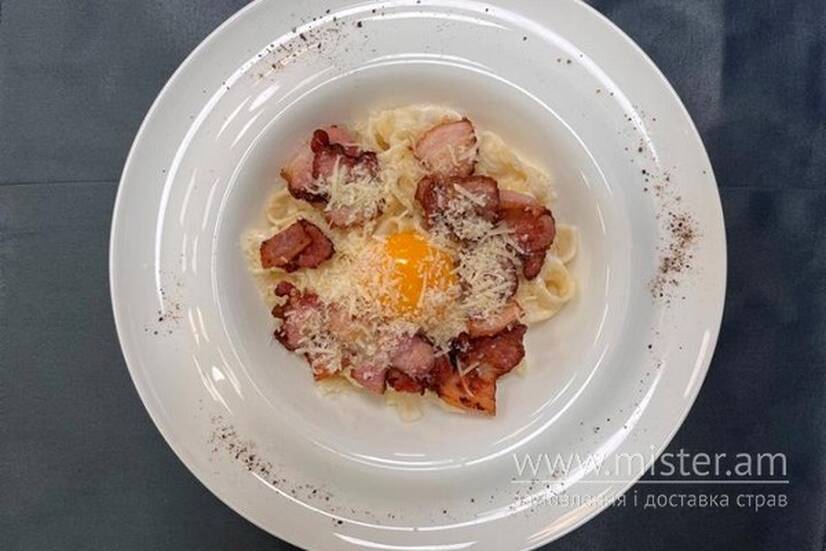 Паста з куркою, грибами у вершковому соусі з сиром пармезан.