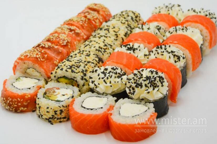 Філадельфія з лососем, Філадельфія гриль, Фуджі з лососем, Такеторі.