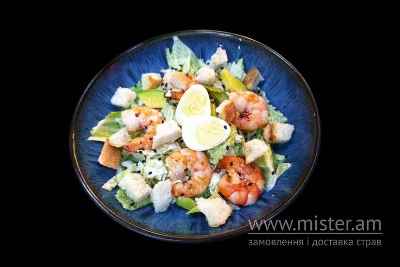 Креветки, авокадо, лайм, пекинка, яйце перепелине, майонез, олія кунжутна.