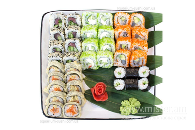 Рол "Магуро", рол з окунем та авокадо, гарячий рол з лососем, рол з огірком та сиром, Макі рол з креветкою.