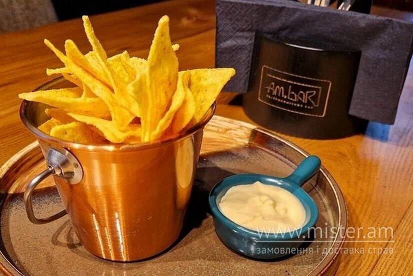 Чипси кукурудзяні начос з сирним пікантним соусом