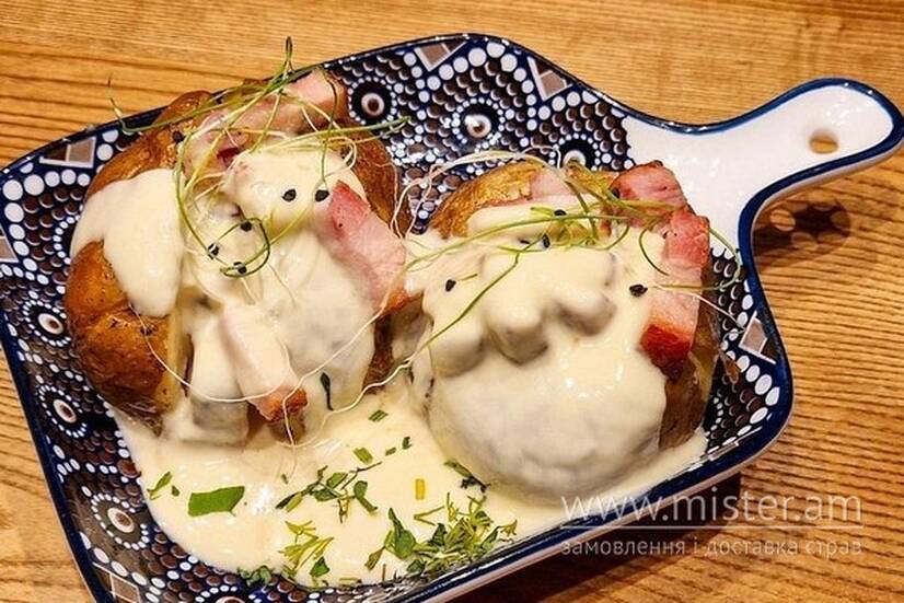 Am.bar Картопля запечена в хоспері з беконом та сирним соусом