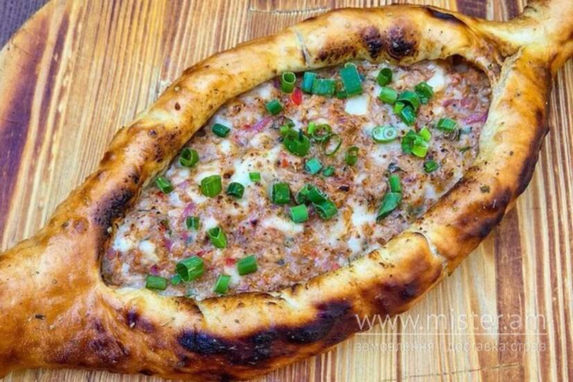 Сир сулугуні, свинина, цибуля марс, цибуля целена.