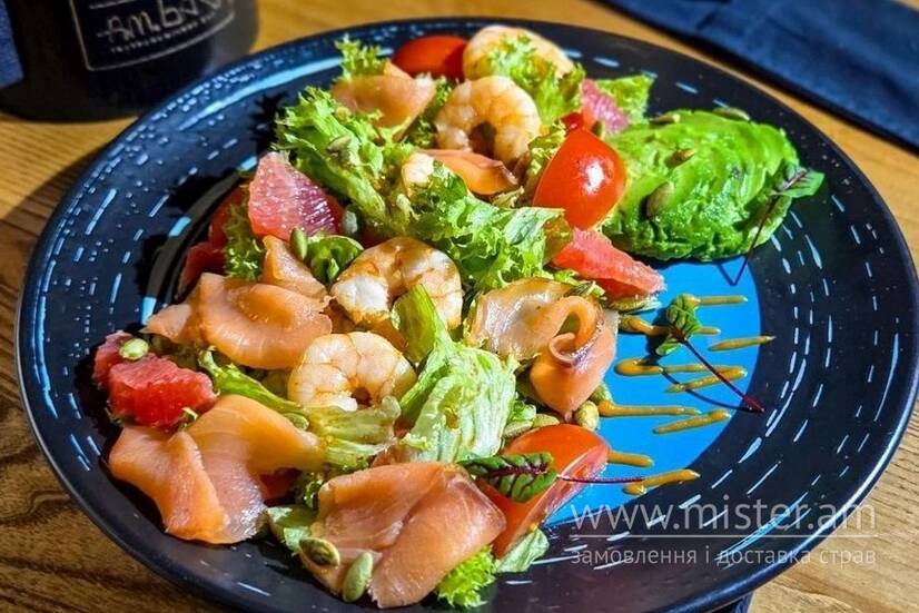 Салат з креветками та копченим лососем