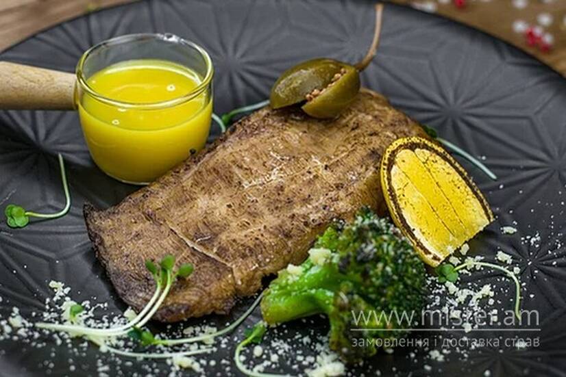Хоспер меню: Яловичий стейк New York, Яловичий Стейк Рібай, Язик телячий гриль, Стейк зі свинячого ошийка, Запечений кістковий мозок, Шашлик із курячого стегна, Шашлик зі свиного ошийка, Стейк з індички з овочами, Кебаб з курки, Кебаб з баранини, Скумбрія з моцарелою, Стейк тунця, Лосось стейк, Лаваш з сиром запечений в печі на дровах