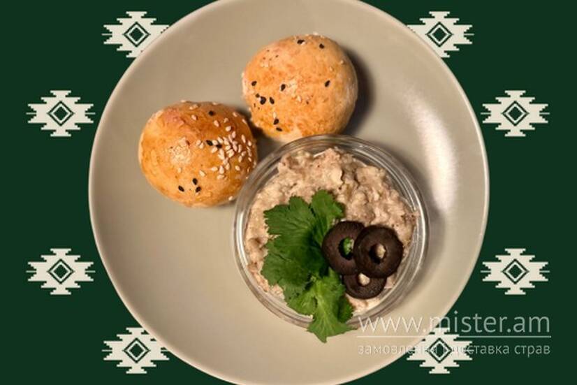 Закуска з перетертих баклажанів, які попередньо смажаться на хоспері, з додаванням цибулі, оливкової олії і солі.