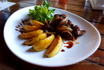Печінка куряча фламбе з яблуками