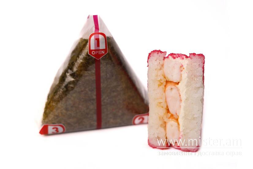 Суші-рис, норі, вершковий крем-сир, креветки тигрові, соус манго, розова панко.