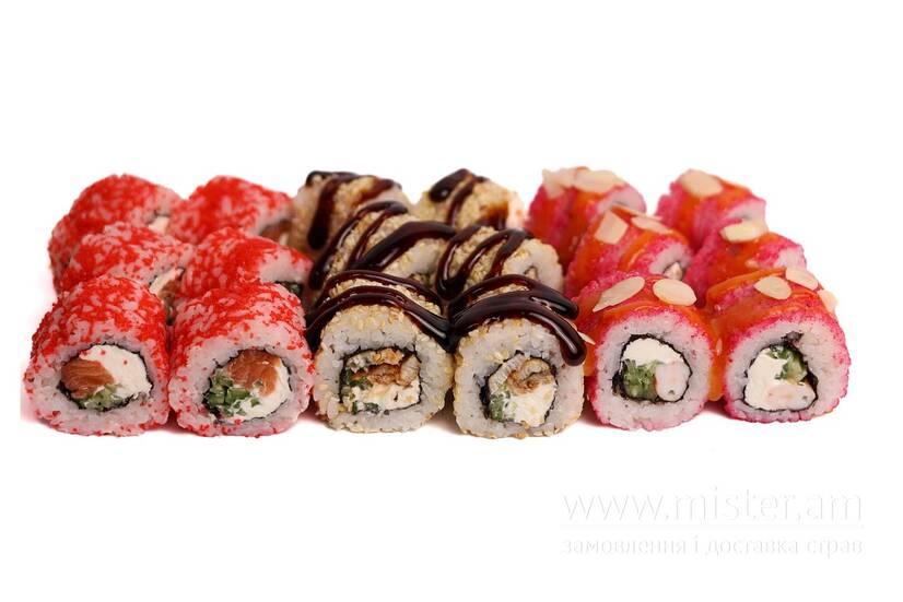 Каліфорнія злососем, Каліфорнія з креветками, Каліфорнія з вугрем.