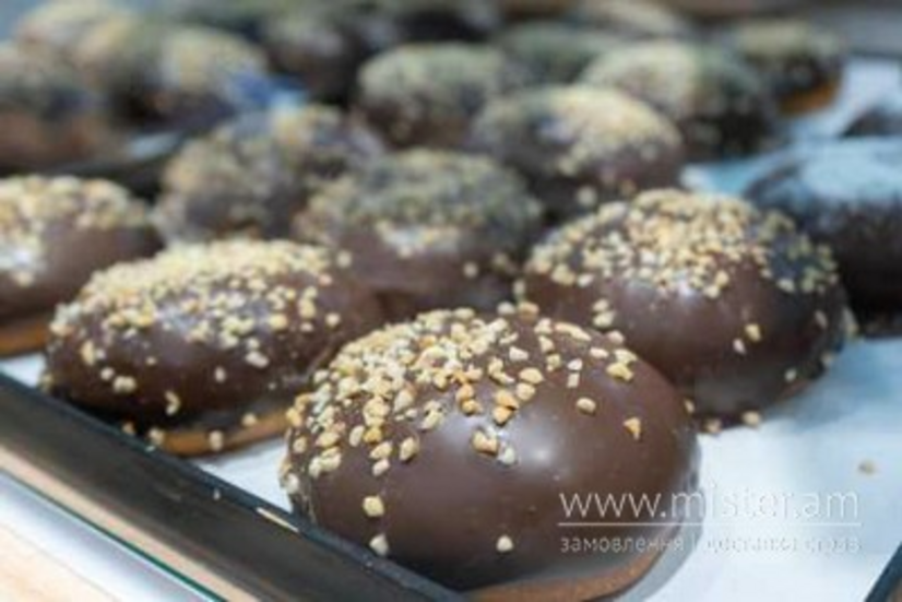 Здобне тісто, всередині щедро заповнене кремом "Пломбір", зверху гарно полите шоколадною глазурью та посипане подрібленим арахісом.