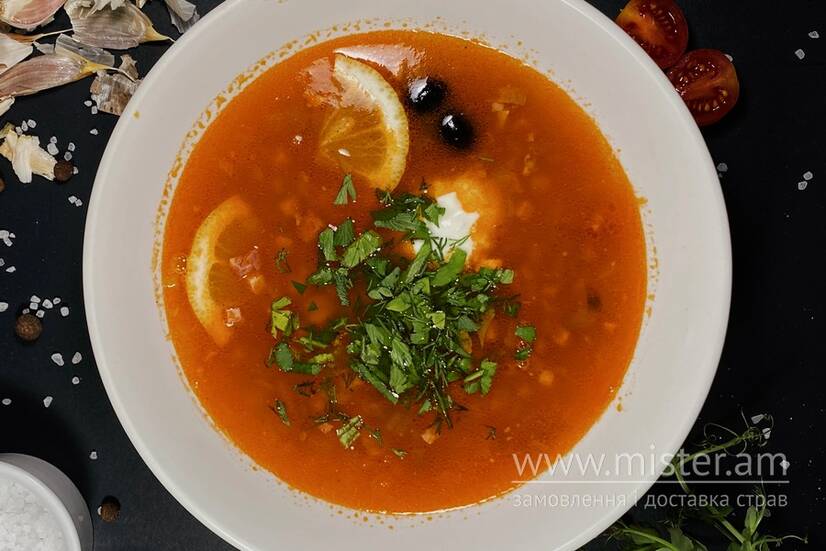Яловичина відварна, картопля, огірок свіж., яйце, майонез, бульйон курячий,лимон, гірчиця, кріп.