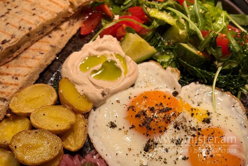 Яєчня / бейбі картопля / лабне-тхіна / хліб з льоном