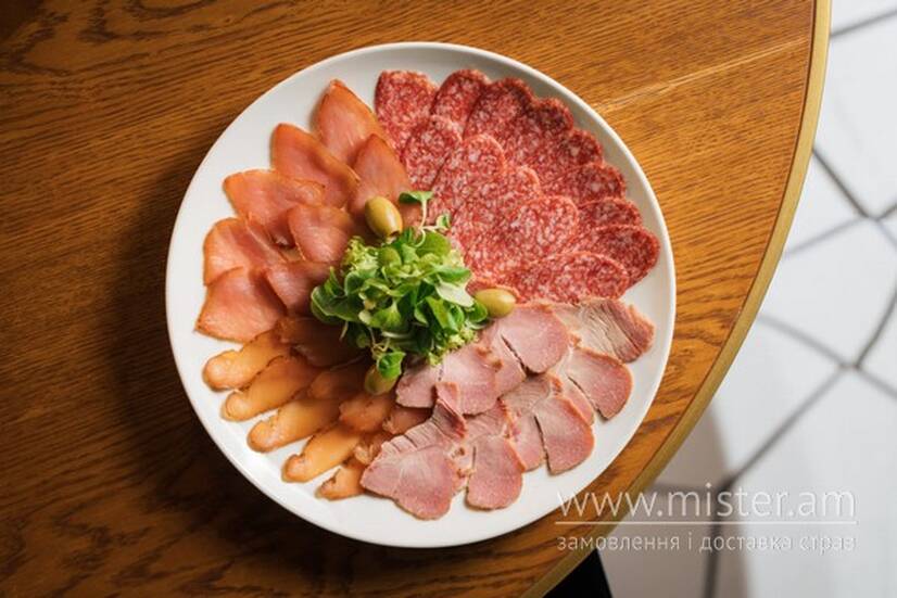 В`ялена свинина, в`ялена курка, окіст, ковбаса.