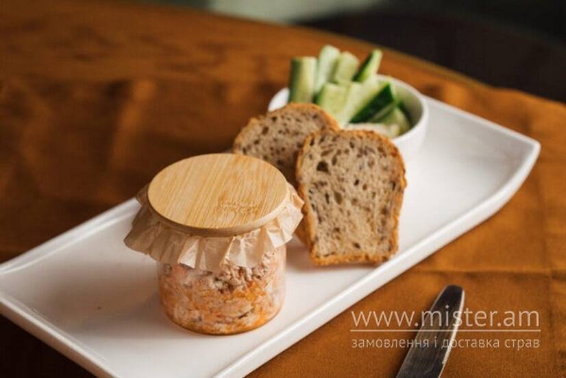 Холодні закуски: Рієт з фермерського кролика, Бабагануш із запеченого баклажану та перцю, Карпачо з ферментованої телятини з каперсами, гірчицею та пармезаном, Мариновані перці з вершковим сиром та анчоусами, Брускета з прошуто, в`яленими томатами та дорблю, Брускета з маринованим тунцем, авокадо та вершковим сиром, Холодець з хріном, Дощечка елітних сирів з лавандовим медом, Тар тар з лосося та тунця з цитрусовим соусом, М`ясні делікатеси власного виробництва, Оселедець на житній грінці з яєчним кремом