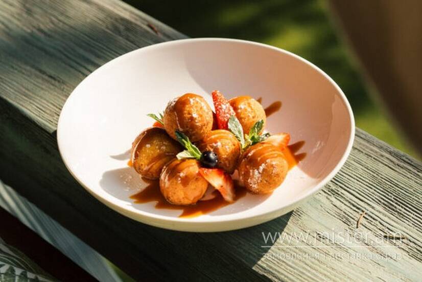 Сирні пончики з карамельним соусом