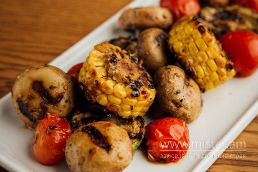 Гриль меню: Стейк Томагавк (волога витримка), Стейк Портер Хаус (суха витримка), Стейк Рібай Black Angus (суха витримка), Шашлик зі свинячого ошийка, Фірмові глазуровані ребра, Каре ягняти, Фірмовий кебаб, Сет м`ясних ковбасок (на двох), Філе курки на щпажці в кисло-солодкому соусі, Равлик з індички з овочевим салатом та сирним соусом, Філе сома з кабачками смажені на грилі, Дорада на грилі, Стейк тунця з корейським салатом, Ананас, Кукурудза, Перець болгарський, Чері, Гриби, Баклажан