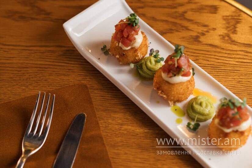 Кремінь Аранчині з тартаром з маринованого тунця з трюфельним айолі