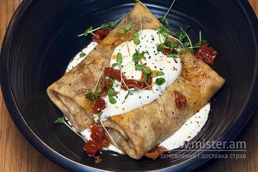 Кремінь Млинці з дичиною, в`яленими томатами та копченою сметаною