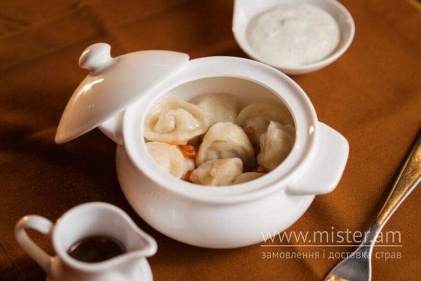Пельмені з рибою з сирно-ікорним соусом та копченим бульйоном