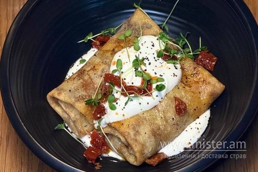 Кремінь Млинці з дичиною, в`яленими томатами та копченою сметаною