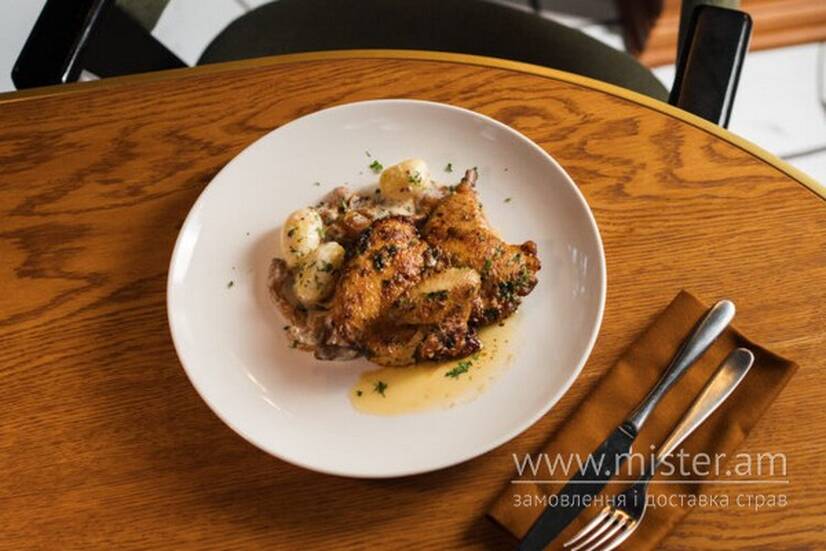 Курча з грибним соусом та картоплею
