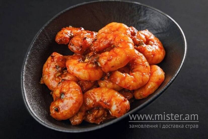 Креветки, соус світ чилі, гірчиця, часник, імбир, лимон.