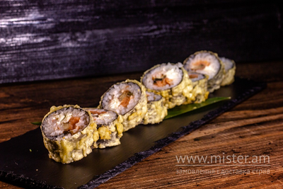 Рис,норі, лосось, вугор, тигрова креветка, крем-сир, сухарі.