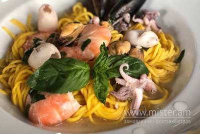 Тальоліні з мідіями, креветками та бебі-восьминогом