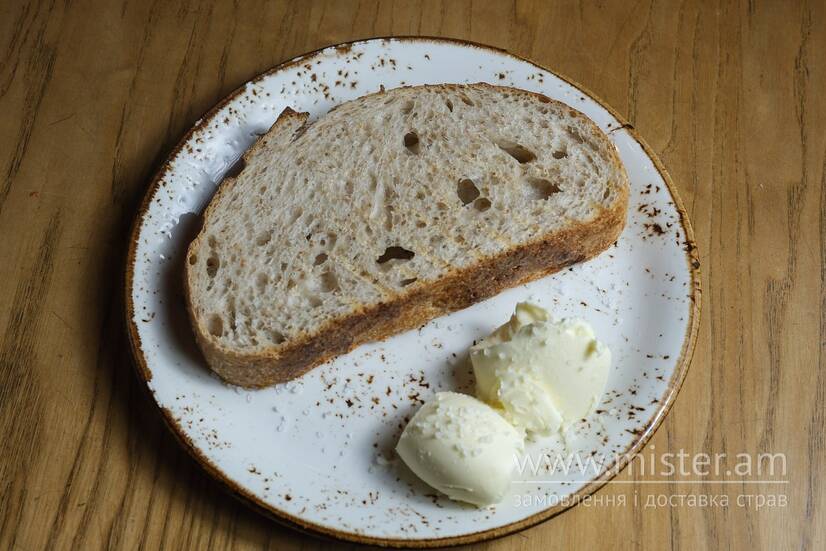 Скрембл на молоці, індичка пастрамі, томати черрі, солодкий перець, салат айсберг, мікс листя салату, збите масло з часником, соняшникове, гарбузове насіння, оливкова олія, лимонний сік, хліб на заквасці.