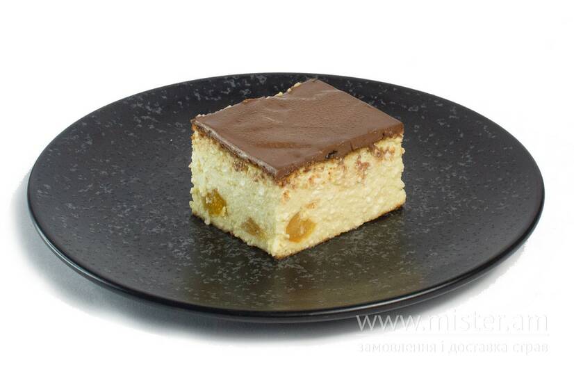 Десерт, в якому за класичною рецептурою поєднуються сир, курага, яйця та картопляного пюре, що робить текстуру десерту довершеною.